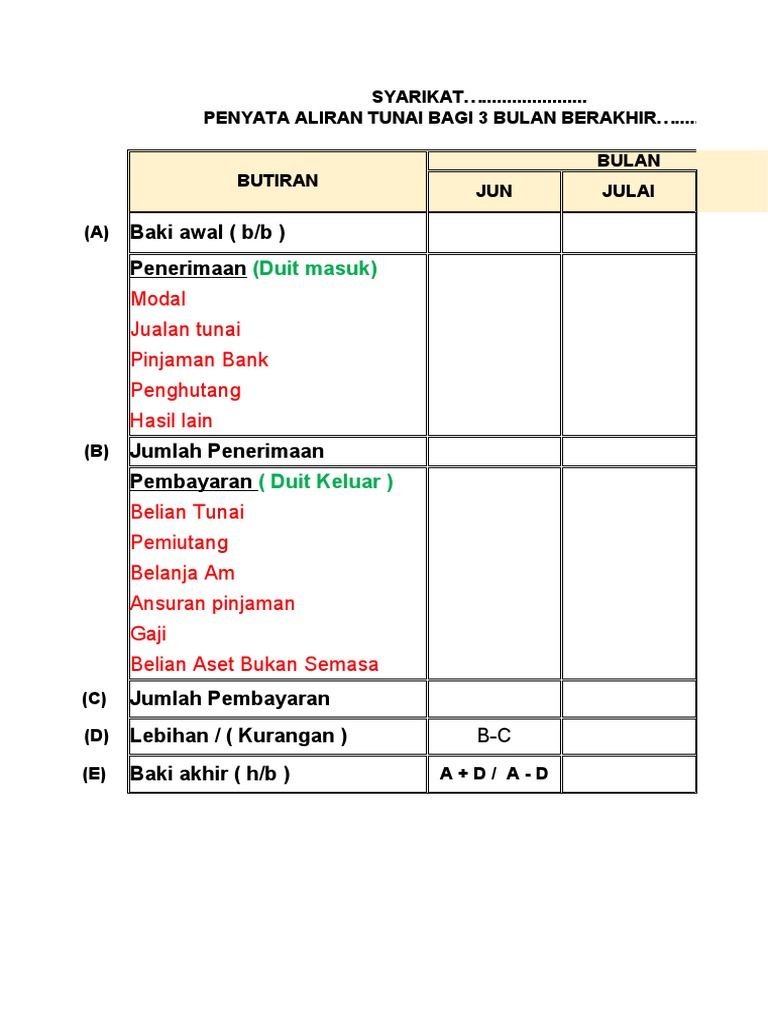 Aliran tunai sudah ada di dalam setiap bahagian perekodan. Borang perancangan kerja lebih masa. Borang kebenaran pertukaran cek dengan wang tunai petty cash semua jabatan.